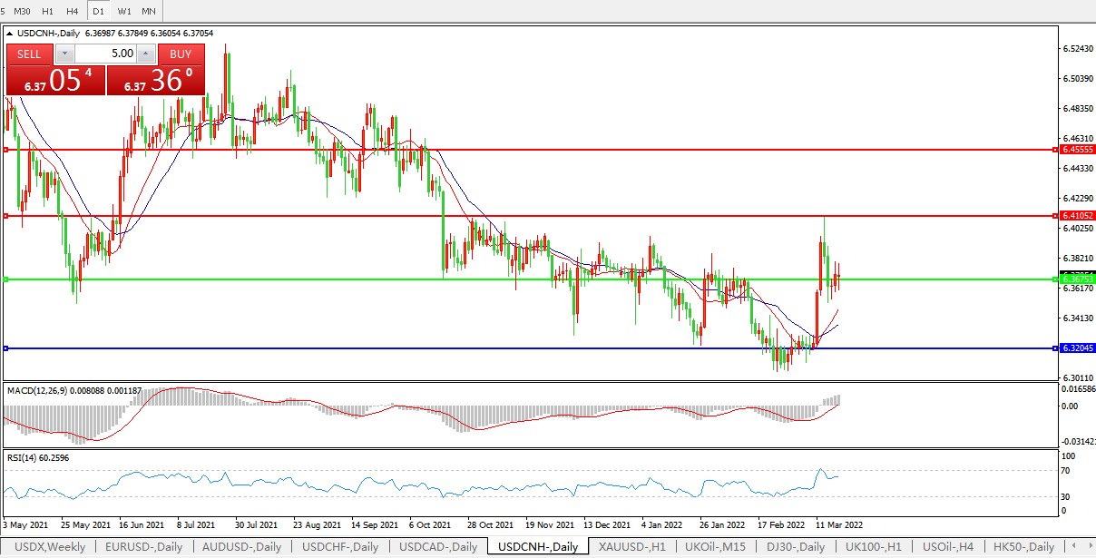 备选策略:在6.3650之下,看跌,目标价位为6.3200,然后为6.2800。