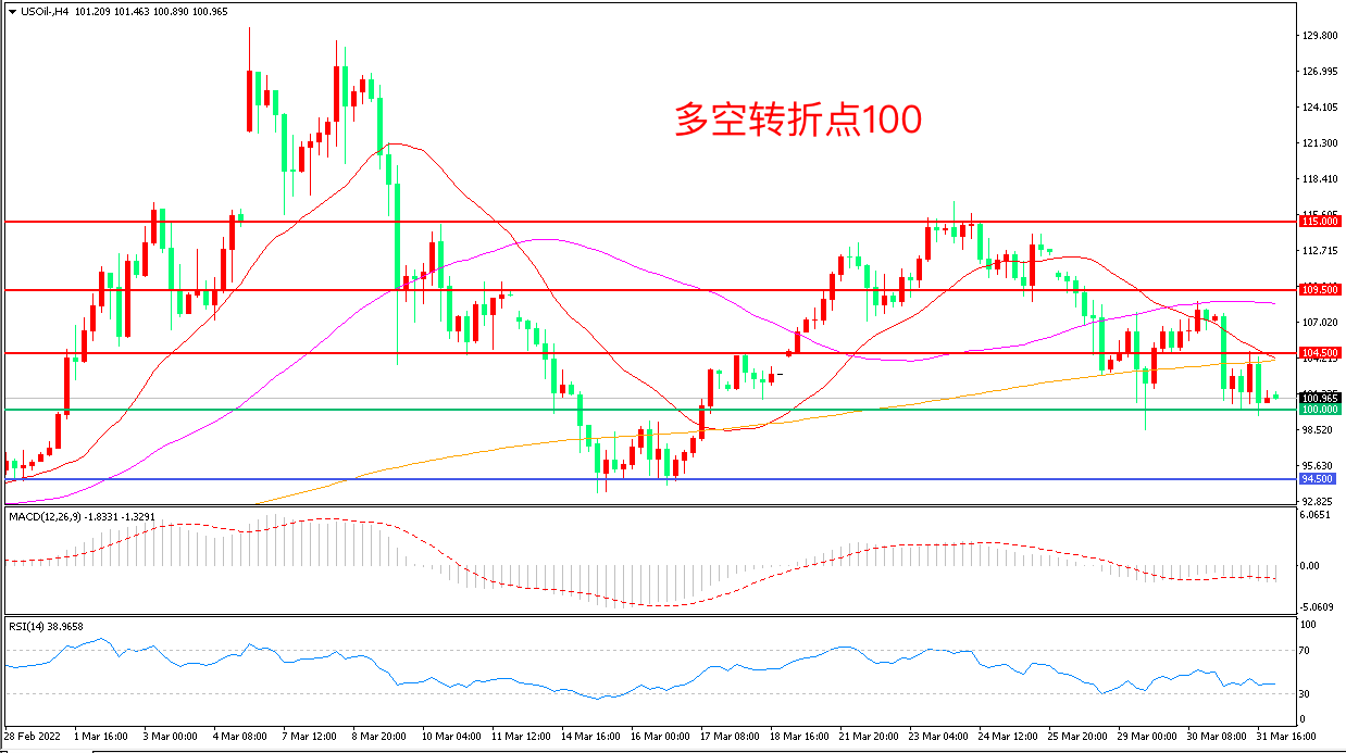 交易策略:在100.00之上看涨,目标104.50 109.50