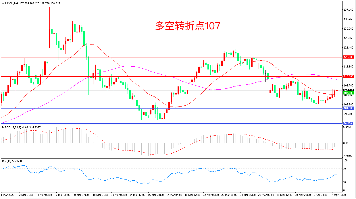 周一(4月4日),沙特阿拉伯宣布提高5月份面向亚洲客户的所有石油价格,并上调面向美国和欧洲所有品类油价,凸显了其对石油需求前景的乐观,布伦特原油受到鼓舞,大幅反弹后收报108.00美元/桶。数据显示,过去一周内,美国从俄罗斯进口石油规模大幅增长了43%,各国仍在”积极囤油”的情况下,油价仍然易涨难跌。