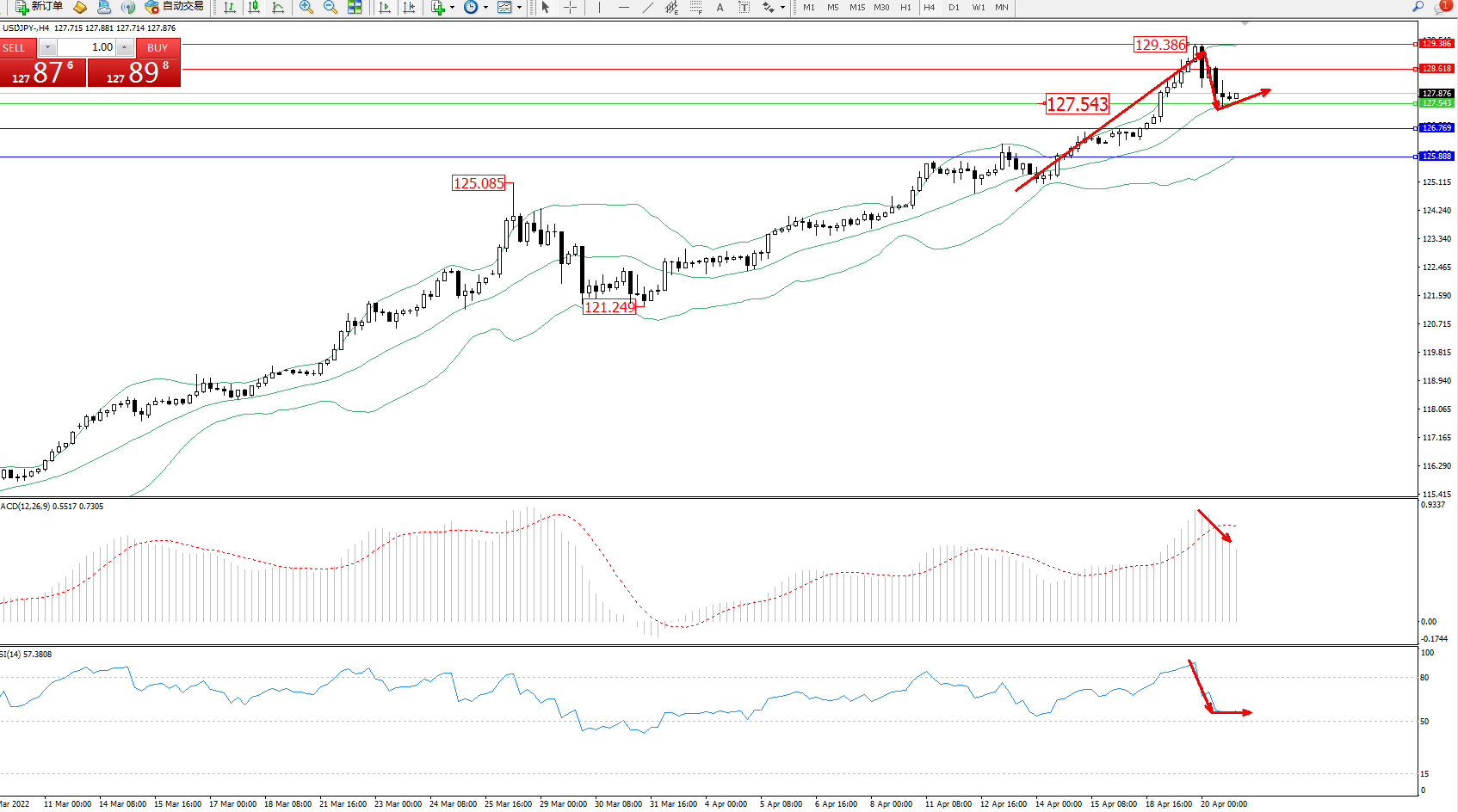 技术点评:多头动力延续布林带指标通道中上轨区间下持续震荡上扬,高位抵达129.386位置节点后回撤,短期触及布林带指标中轨附近节点后有继续向上移动态势,布林带指标呈上行趋势走势态势良好,高位缓慢张口走势后开始逐渐收口,MACD指标处于多头区域高位震荡下行,RSI指标处于多头区域急速下挫后开始平移;