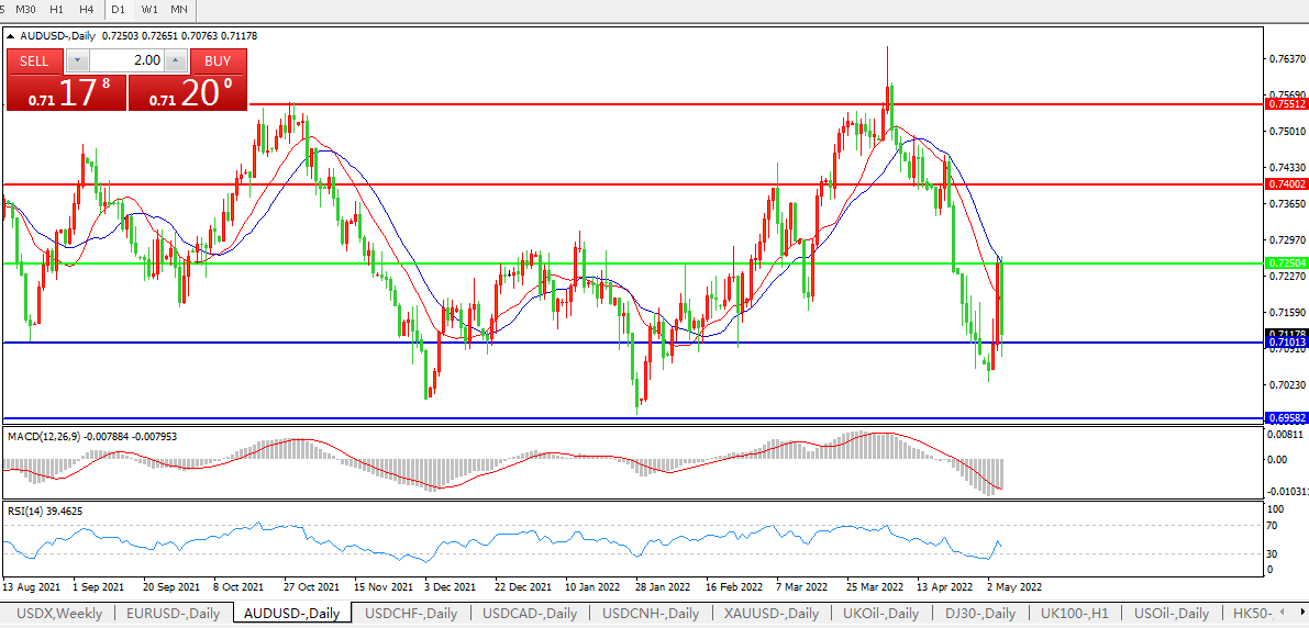 交易策略:0.7250下方看跌,目标0.7100、0.6950