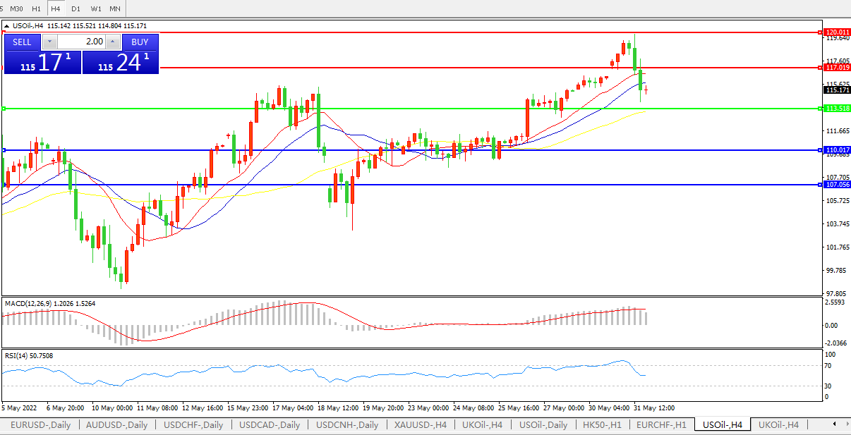 美国原油USOIL     4小时图