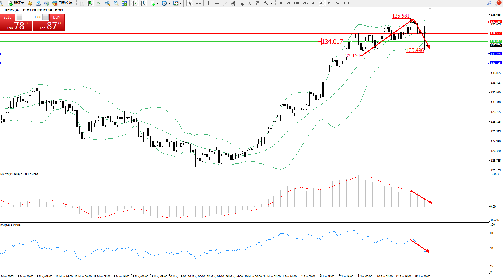 支撑位:133.244、132.705