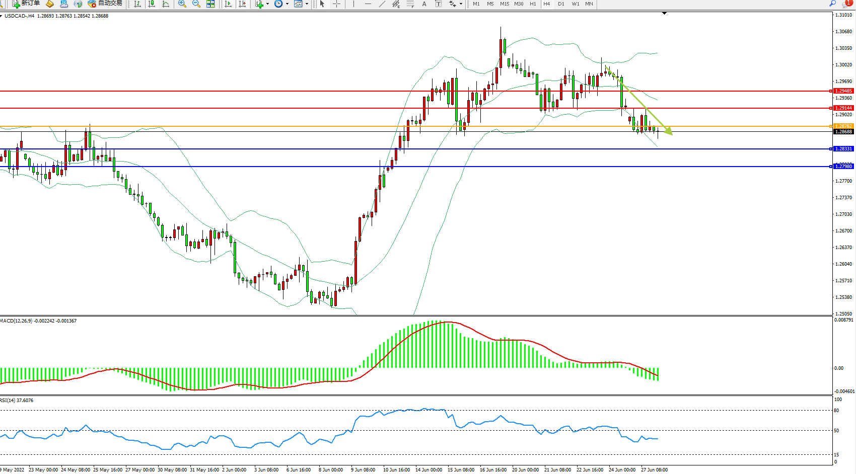 交易策略:1.28782下方看跌,目标1.28331、1.27980