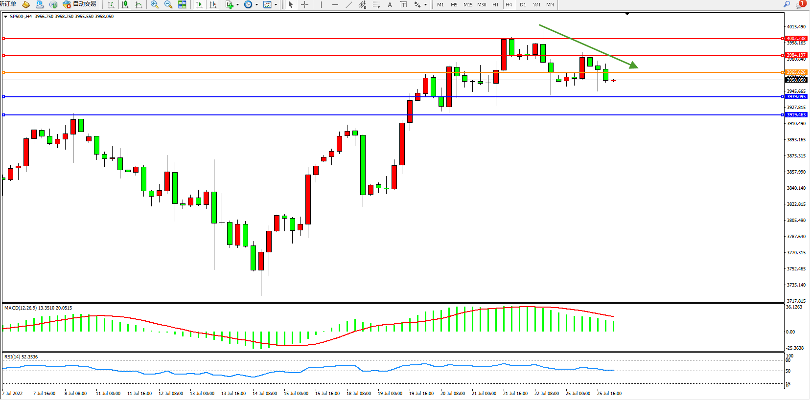 标普500指数7月25日(周一)收盘上涨4.85点,涨幅0.12%,报3966.48点;华尔街的投资者押注美联储将积极加息直至年底,然后从明年开始降息。