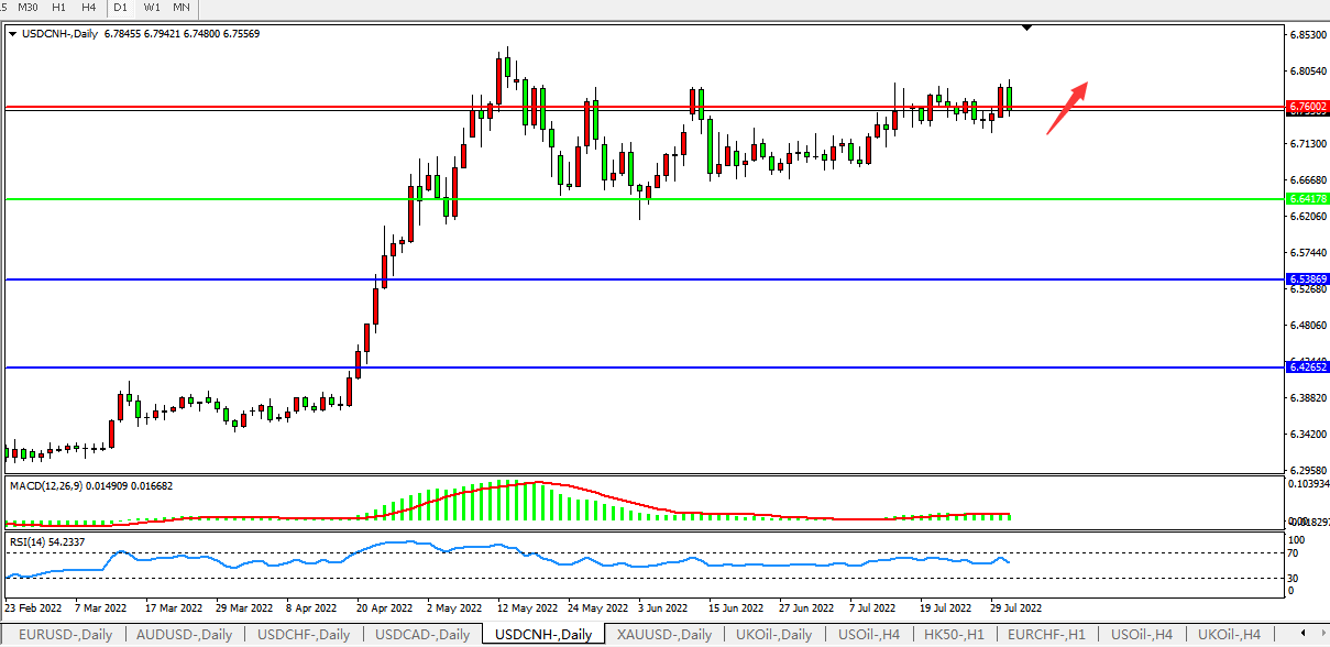 USDCNH : 风险暂缓,小幅回落 USDCNH   HKDCNH