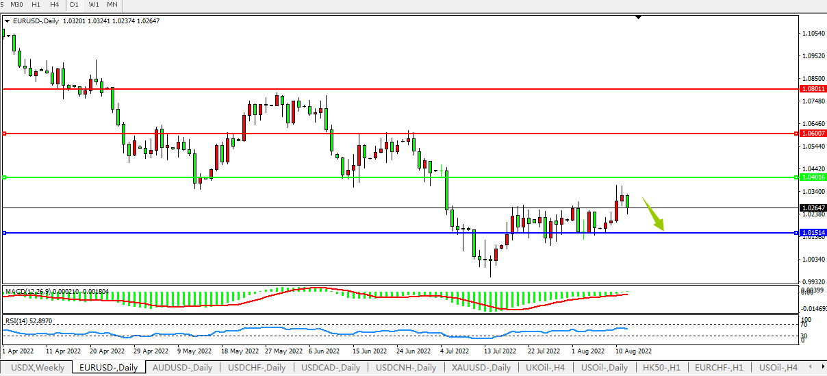 交易策略:1.0400下方看跌,目标1.0150、1.0000