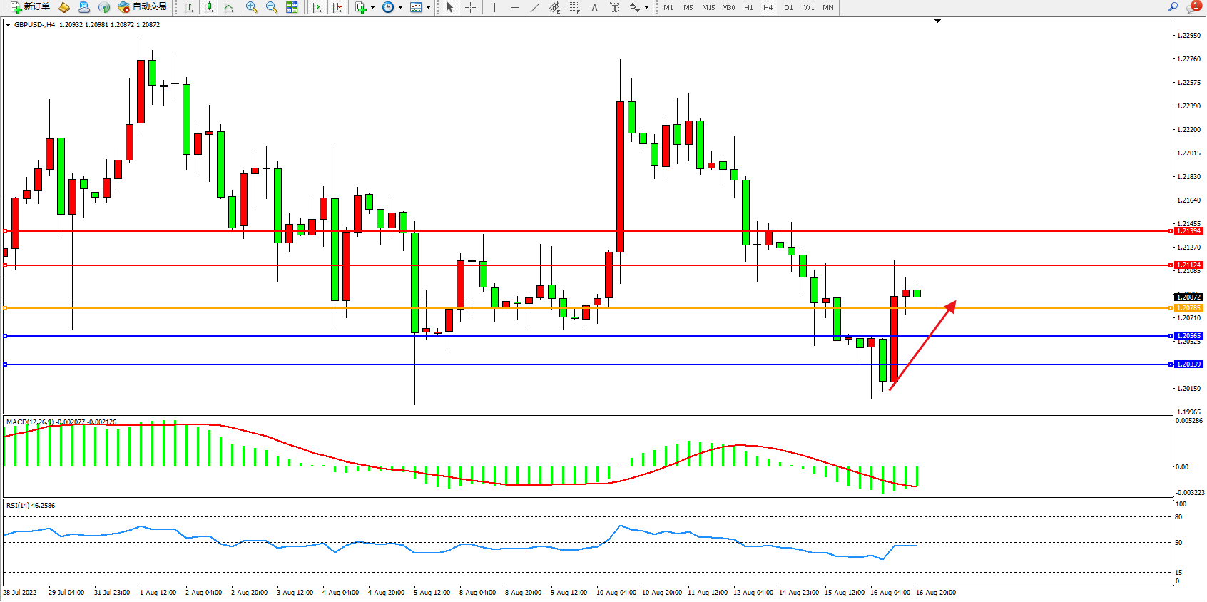 英镑美元GBPUSD ——4小时K线图显示: