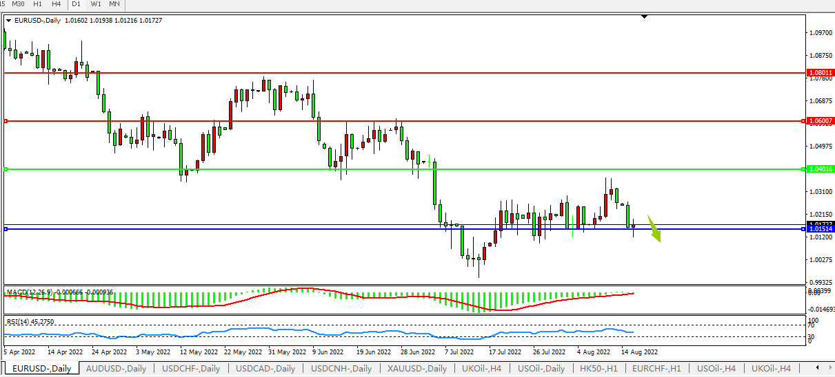 交易策略:1.0400下方看跌,目标1.0150、1.0000