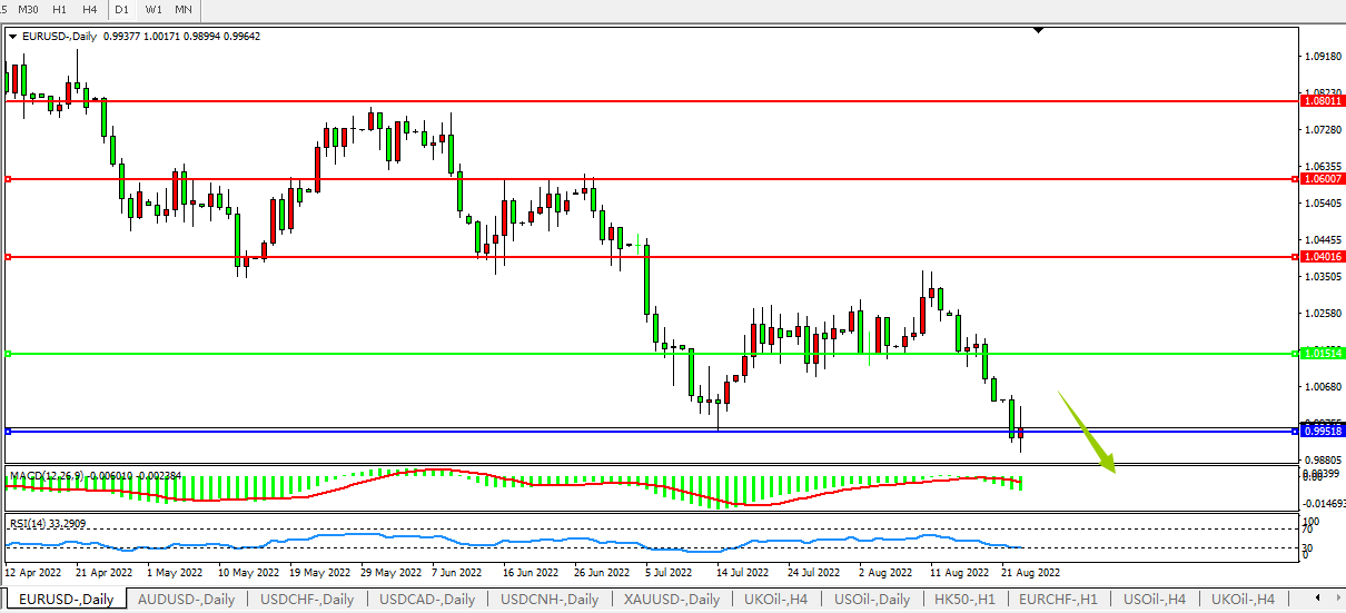 欧元兑美元上涨0.19%,报0.99625,脱离稍早创下的20年新低0.99005,人们再次担心能源冲击继续刺激通胀,使欧洲更有可能陷入衰退,一度拖累欧元下跌。PMI数据显示,欧洲8月企业活动萎缩程度低于预测,但前景仍然暗淡。