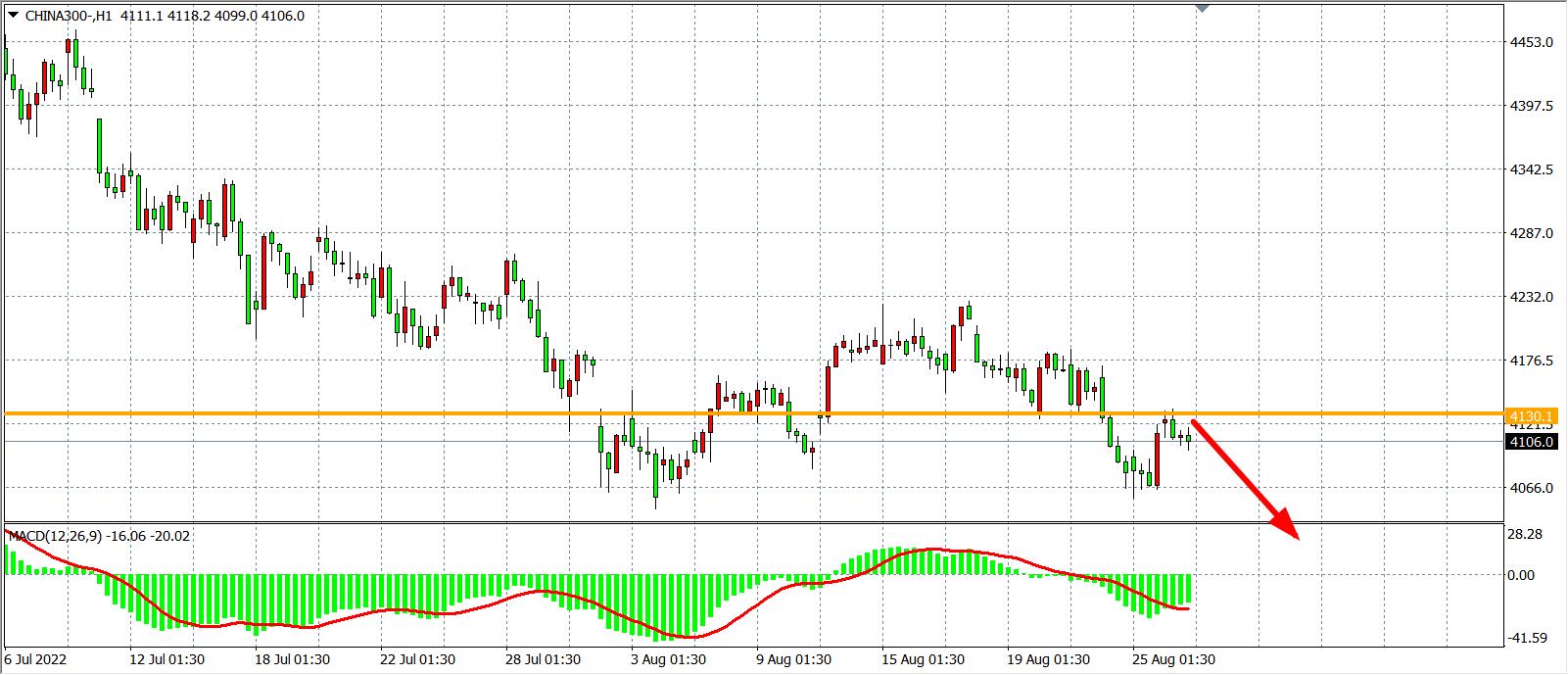 1小时图看,沪深300反弹4130再度受阻,该位阻力再度得到确认,MACD于零轴之下量能开始有所减弱,预示行情或在4130附近形成拉锯,维持前一交易日操作思路不变,日内在4130之下继续看跌,下方目标4050-3970