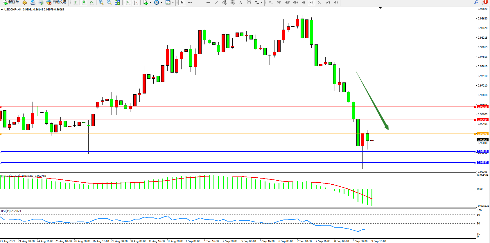 交易策略:0.96191下方看跌,目标0.95819、0.95587