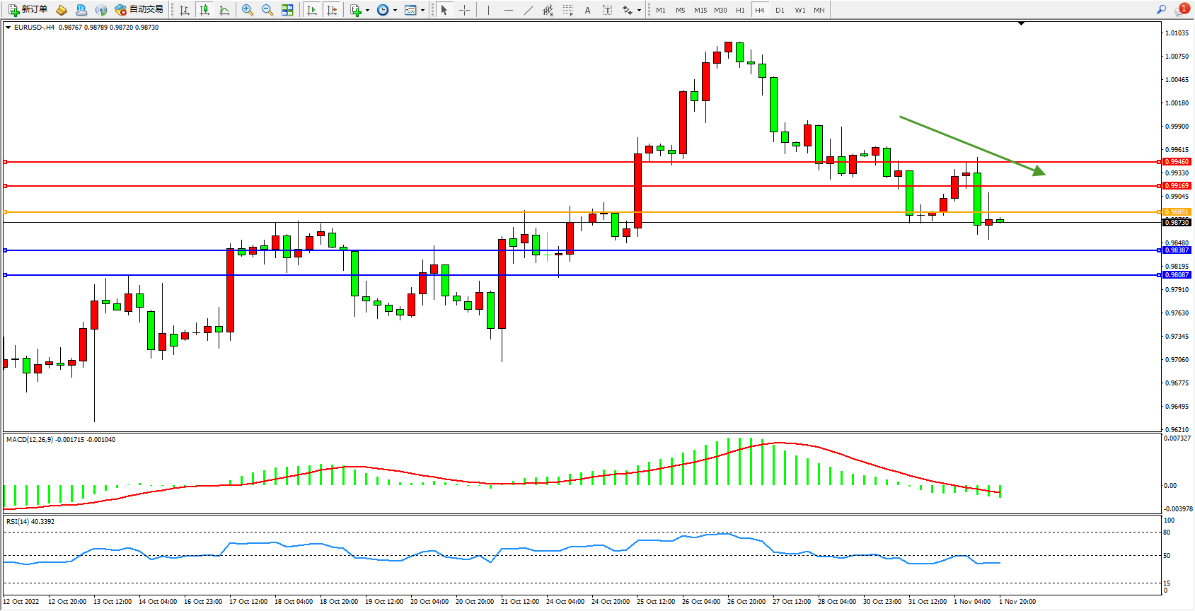 交易策略:0.98851下方看跌,目标0.98387、0.98087