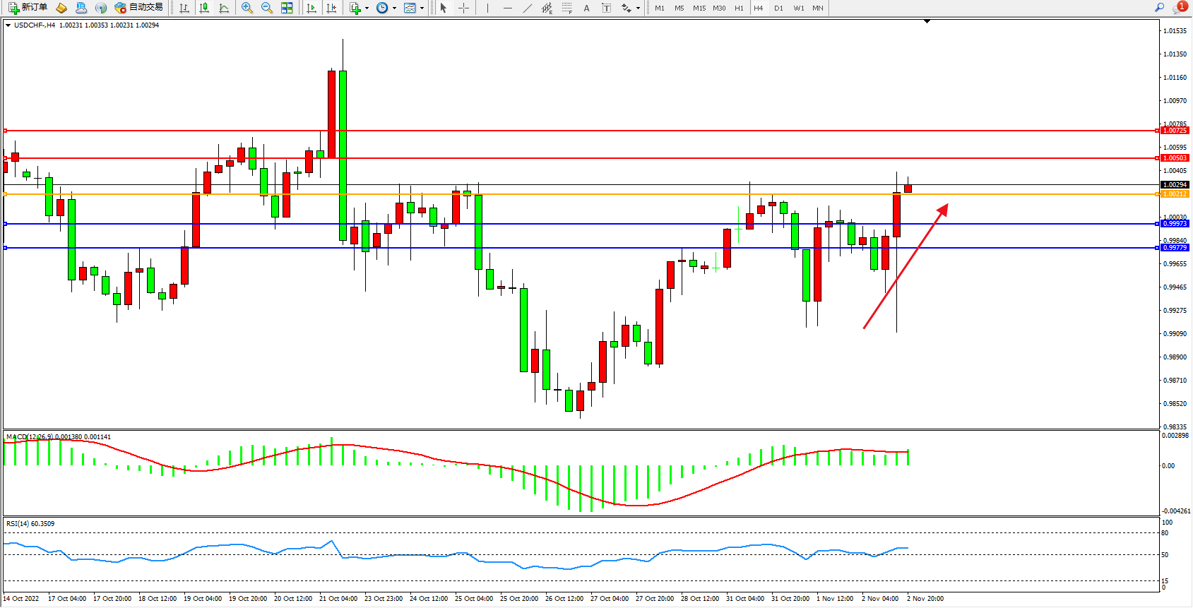 美瑞:急速上移 USDCHF  XAUUSD
