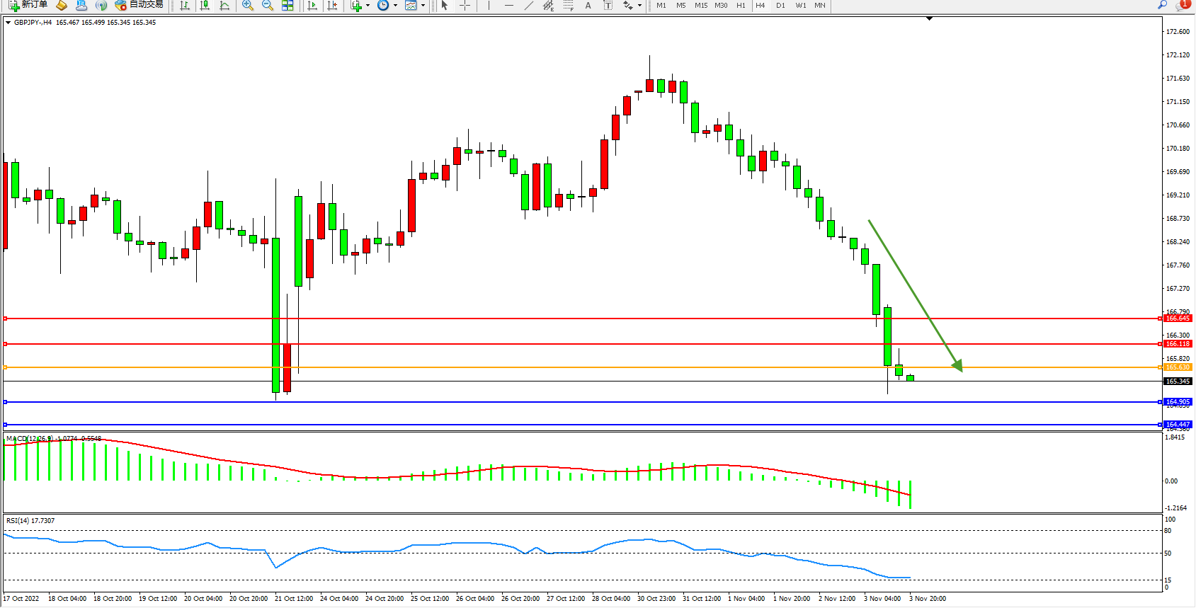 英镑兑日圆维持165.345附近震荡,预计英国经济将在较长一段时间内处于衰退状态,CPI通胀短期内将保持在10%以上的高位。从2023年年中开始,通胀预计将大幅下降,前提是市场利率走高,同时此前能源价格的上涨不在年度比较范围之内。