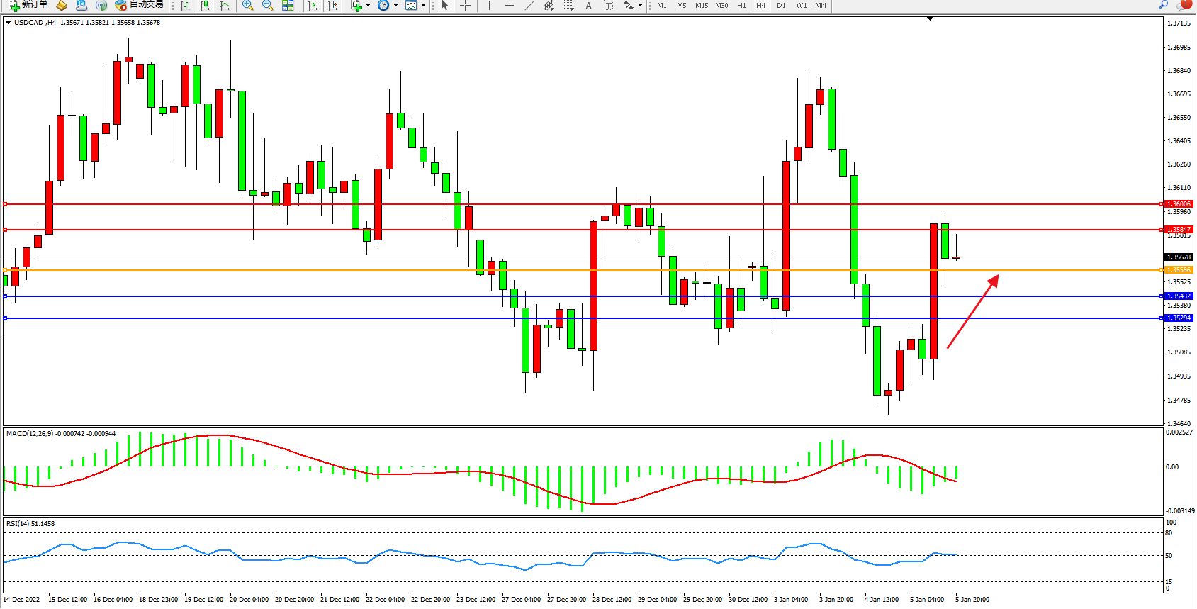 交易策略:1.35596上方看涨,目标1.35847、1.36006