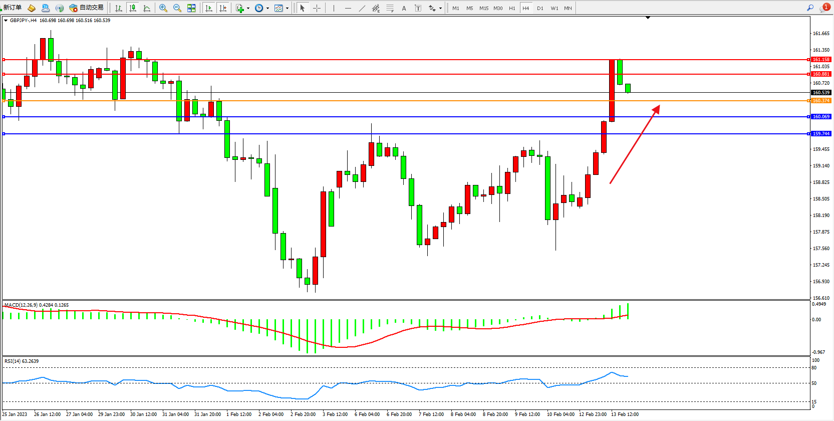 交易策略:160.374上方看涨,目标160.881、161.158