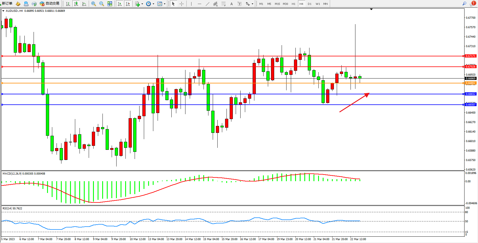 交易策略:0.66802上方看涨,目标0.67026  0.67171