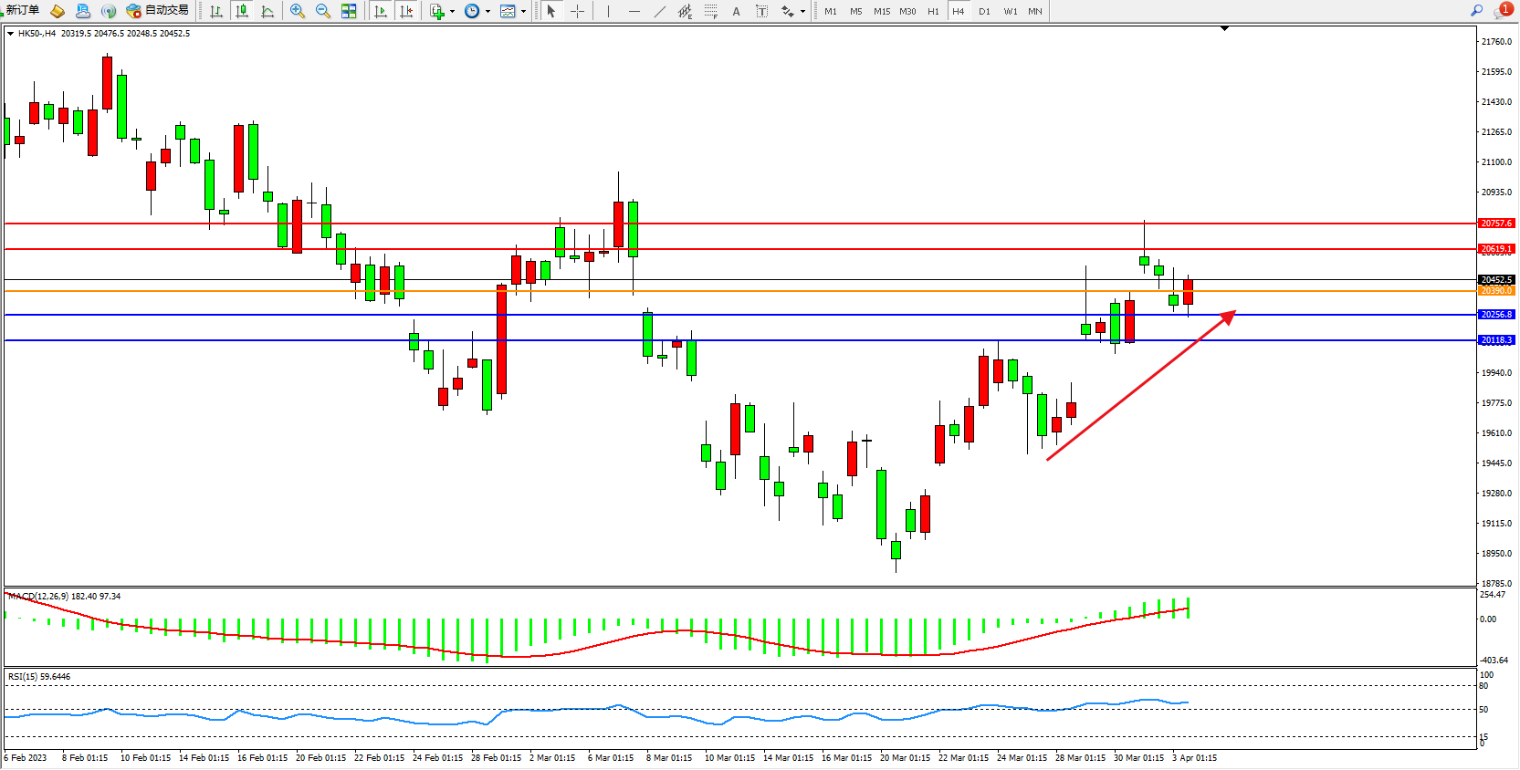 香港恒生指数4月3日(周一)收盘上涨9.07点,涨幅0.04%,报20409.18点;港股多数收跌,恒指收涨0.04%,国指跌0.41%,恒生科技指数跌0.03%。大型科技股多数下跌,哔哩哔哩跌4.7%,快手跌3%,百度、美团跌2%,南下资金净流入67.51亿港元,大市成交额为1204亿港元。恒指公司:将于2023年5月12日(星期五)宣布2023年第一季度的恒生指数系列检讨结果;恒生指数系列的成份股变动将于2023年6月5日(星期一)生效。