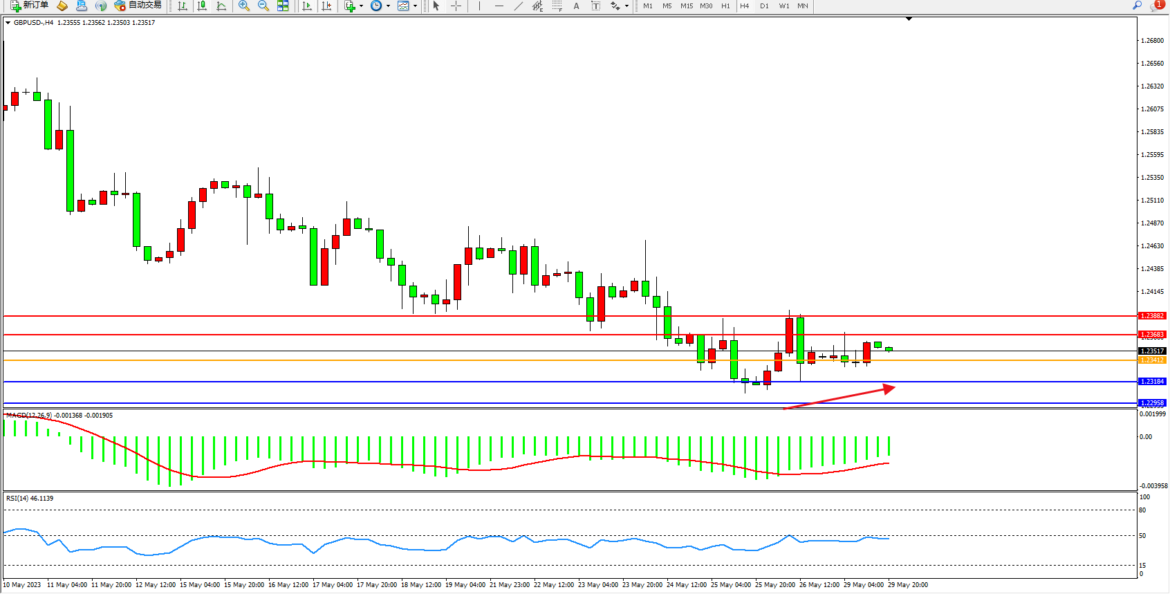 英镑兑美元维持1.23517附近震荡,随着美国债务上限有望解决,美元避险买盘影响因素的下降。英镑或有望大大缓解其近期下跌的风险。近期应继续留意其镑美在1.23水平的支撑。