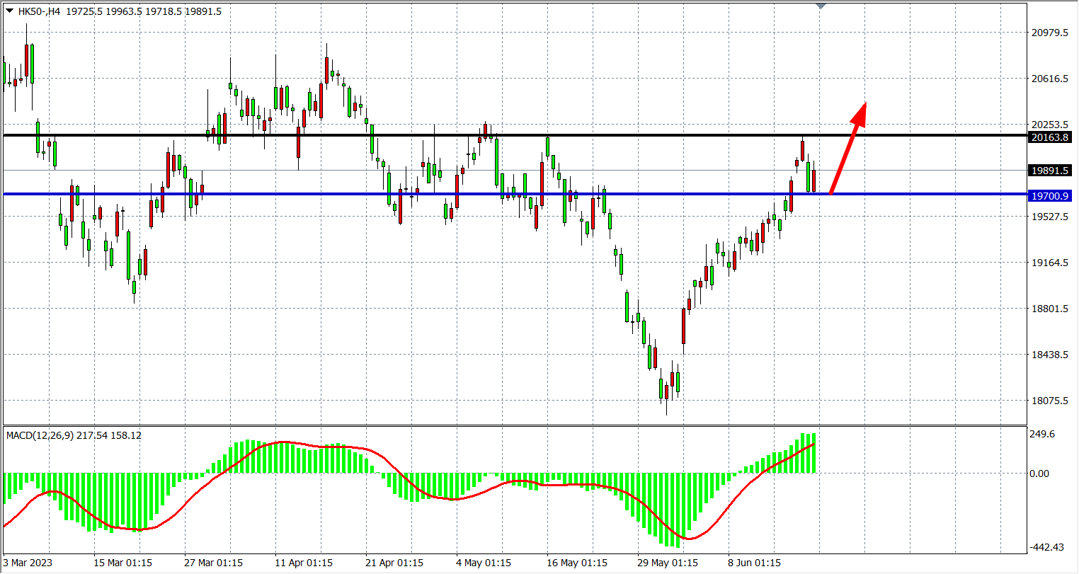 4小时图看,恒指在20100一线受阻后回落,MACD量能在零轴上继续放量,行情进入调整单多头趋势未改,当前支撑关注19700附近,该位之上看20100-20400。