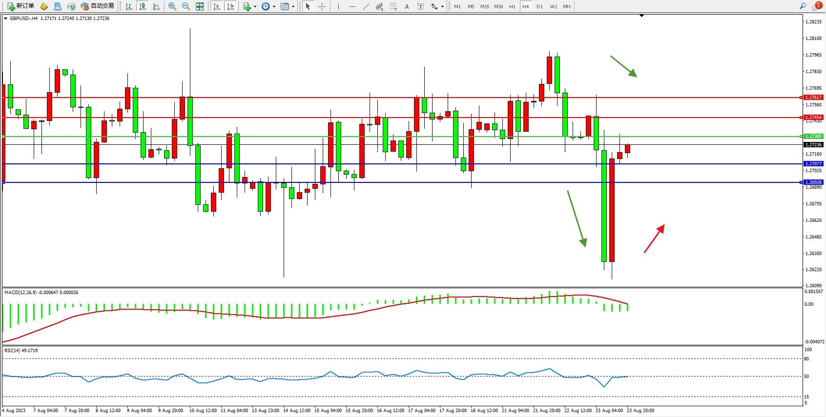 备选策略:1.27300上方看涨,目标1.27454  1.27617