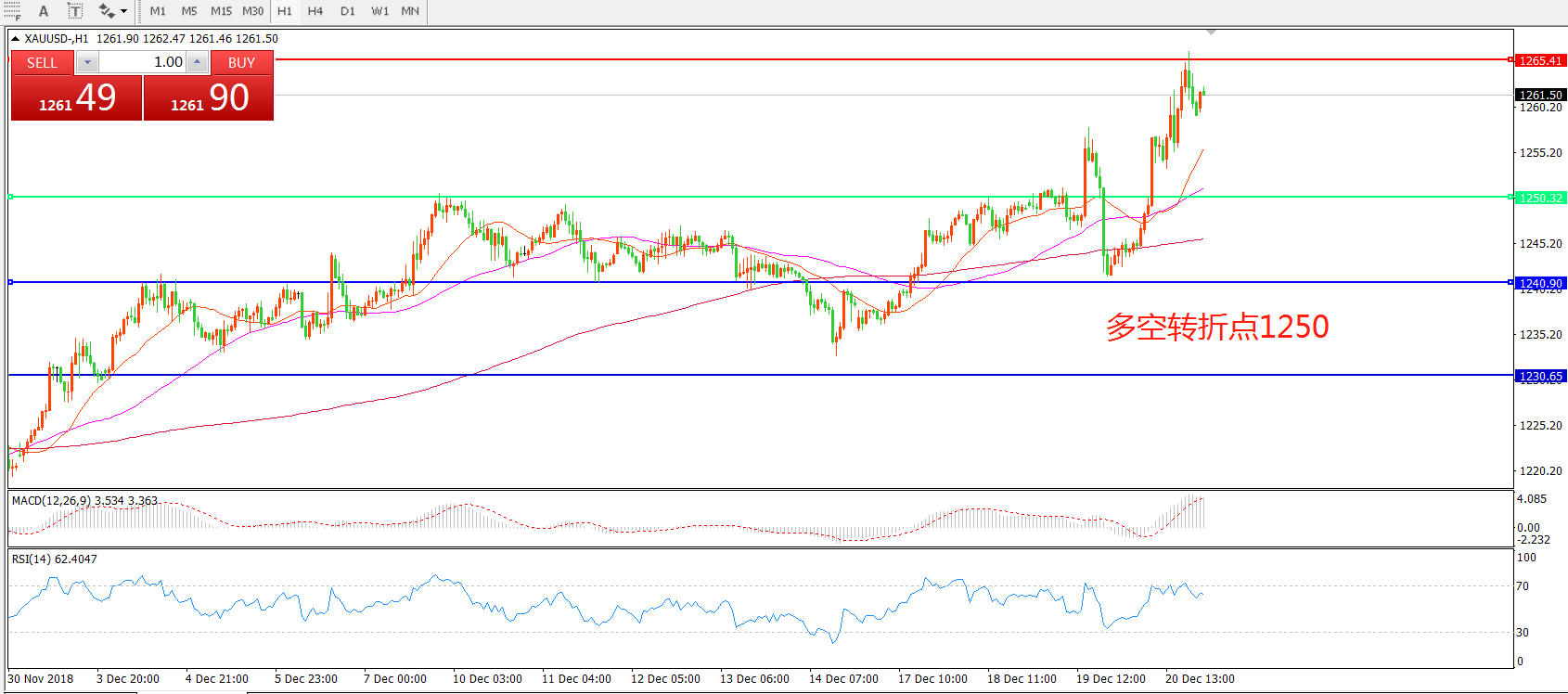 交易策略:在1250.00之上看涨,目标1265.00  1280.00.