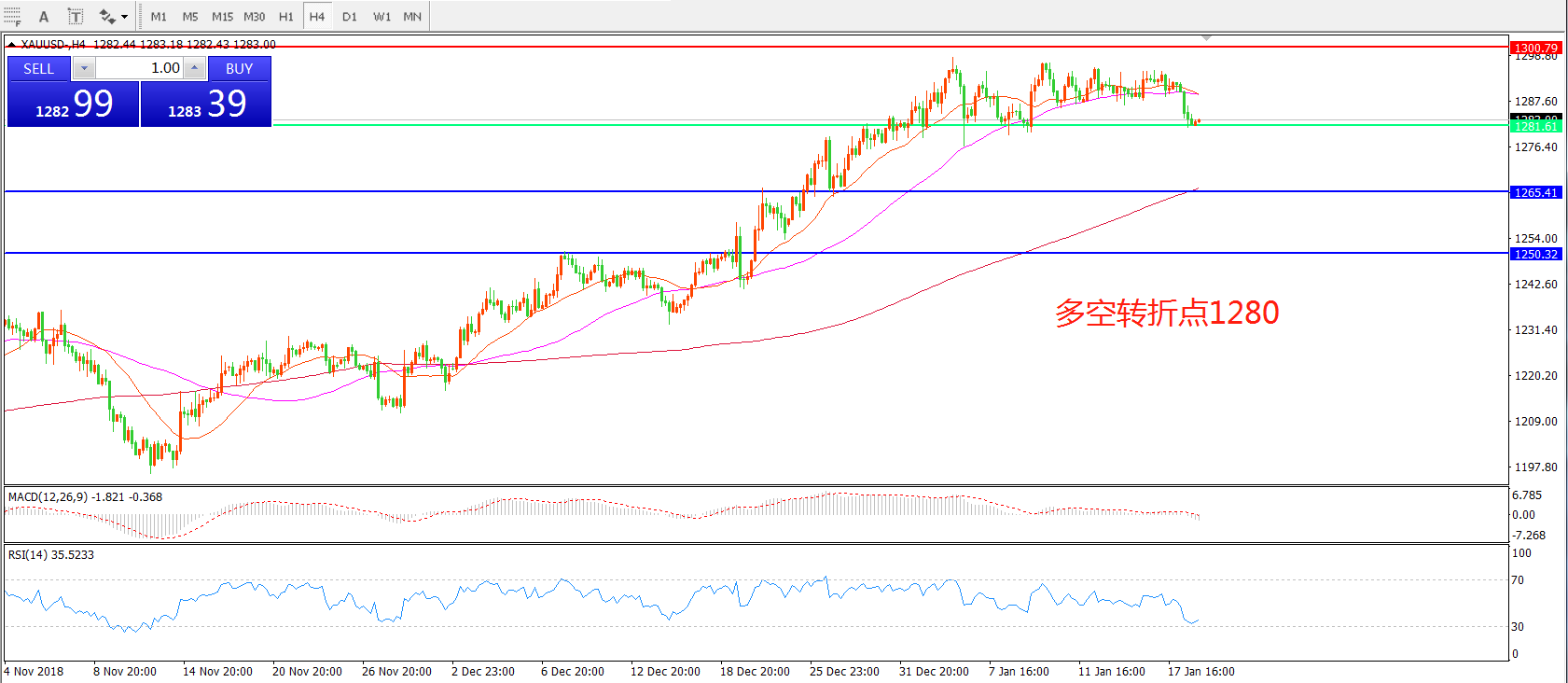 备选策略:在1280.00之上看涨,目标1300.00  1319.00
