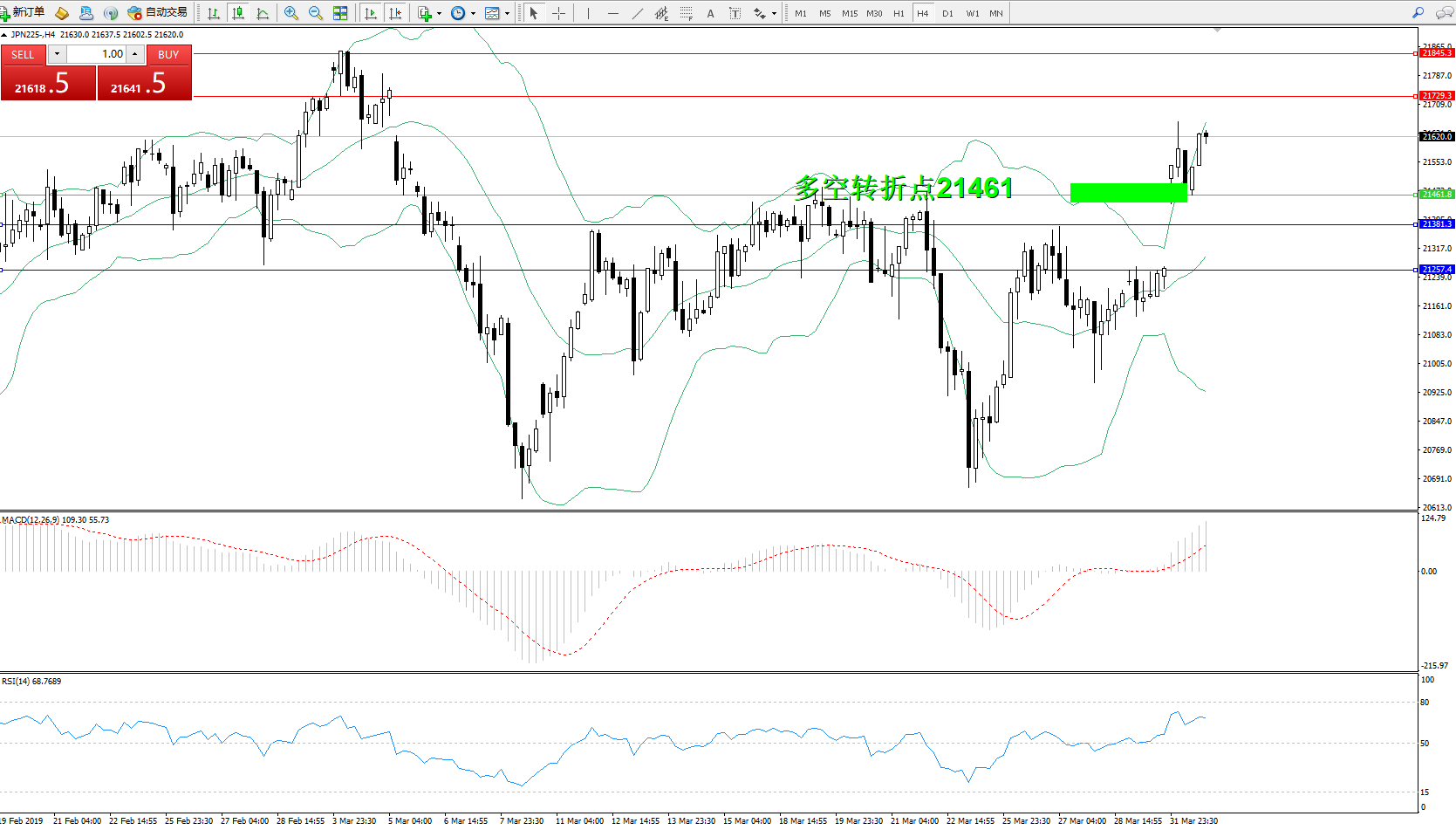日本股市周一在新财年首日收涨,有关中美贸易谈判的希望和中国制造业数据提振了对中国有曝险的股票,帮助抵消日本疲弱的企业信心数据的影响。早盘收盘后,日本政府宣布,今年51日新天皇德仁即位后,年号为令和。该消息提振那些与新年号名称有关的股票上涨。日经指数 .N225 收涨1.4%21,509.03点。日本3月日经/Markit制造业PMI数据也好于预期,由2月的48.9升至49.2,超过预期的48.9。然而,日本3月份大型制造业短观调查指数报12,不及预期的13。交通运输、渔业和运输设备等上涨的板块带领股指走高。