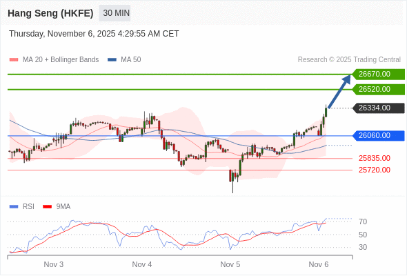 在 26060.00 之上,看涨,目标价位为 26520.00 ,然后为 26670.00 。