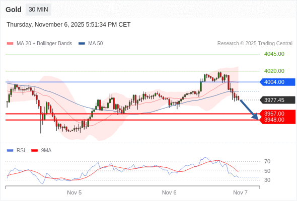 在 4004.00 之下,看跌,目标价位为 3957.00 ,然后为 3948.00 。