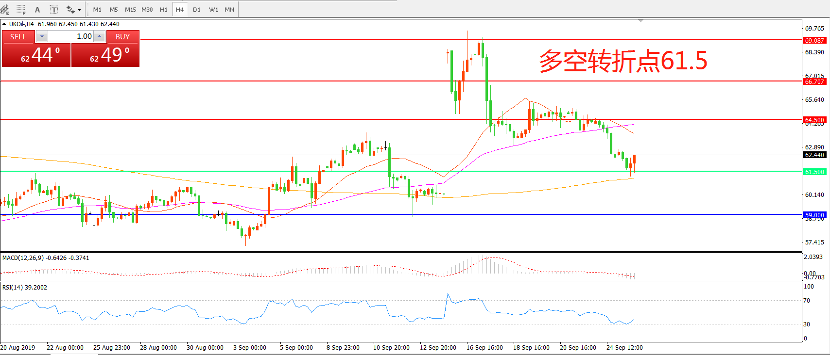 周三(9月25日,美国原油库存报告整体利空,不过市场风险情绪有所改善,这令油价跌幅受限。北京时间22:30,美国EIA公布的数据显示,截至9月20日美国当周EIA原油库存数据增加241.2万桶,远超预期。布伦特原油一度大跌,之后震荡回升,收报62.50美元/桶。沙特产能的提前恢复,全球经济增长的担忧重燃都加重了市场对能源需求的顾虑。
