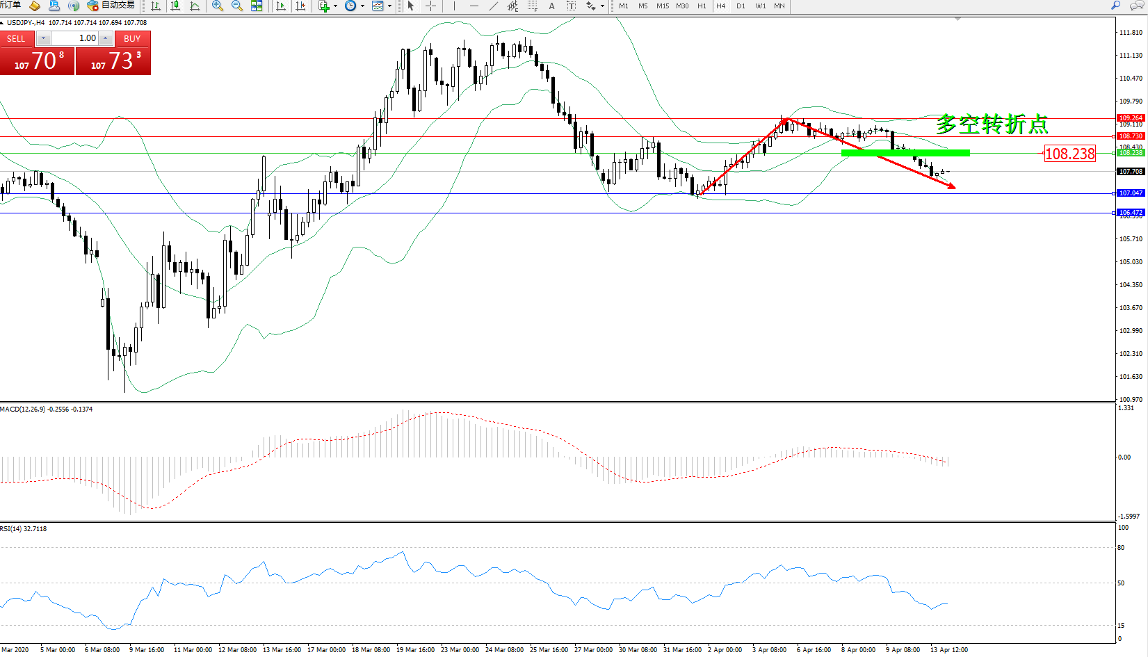备选策略:108.238上方看涨,目标 108.730、109.264