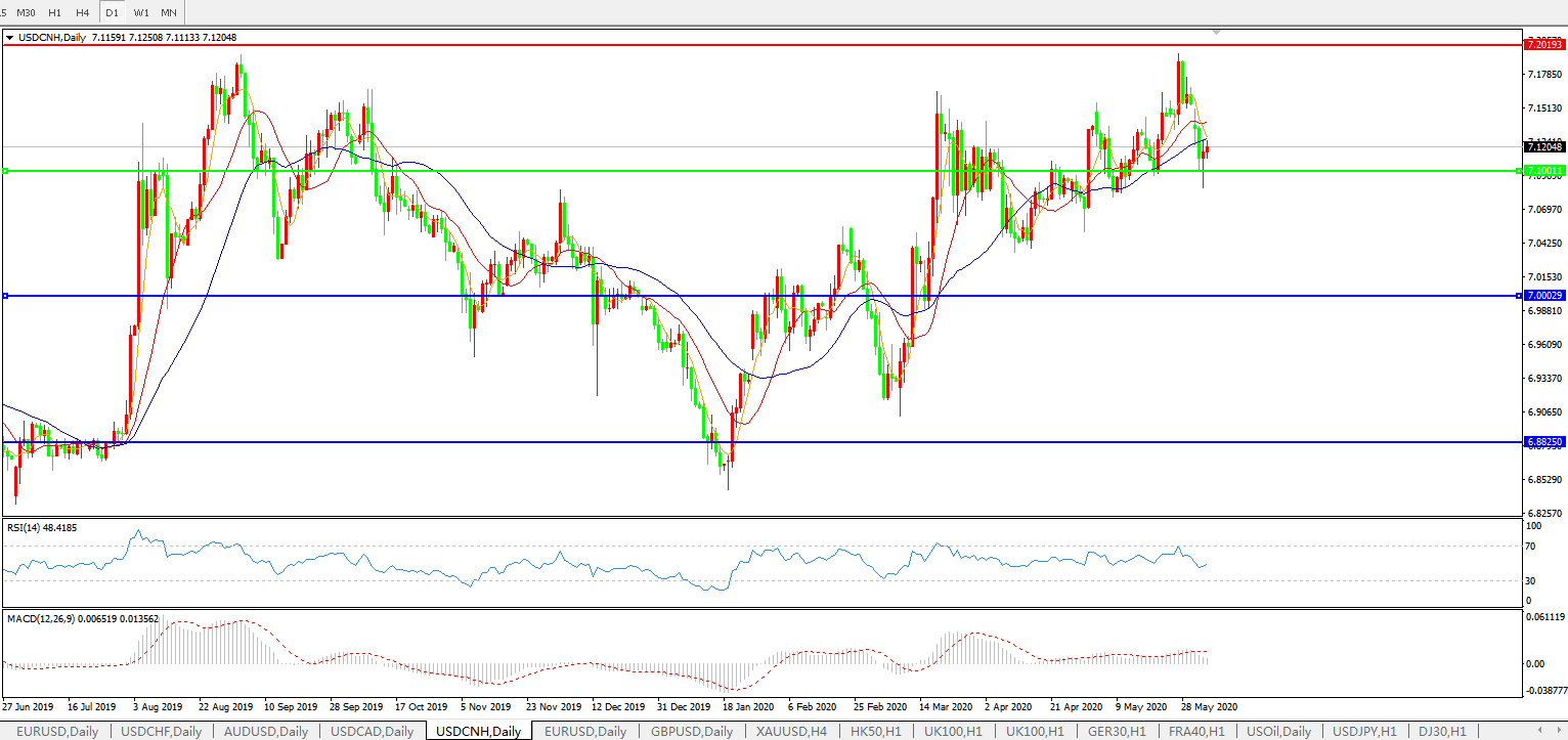 交易策略: 在7.1000之上,看涨,目标价位为7.2000,然后为7.3000。