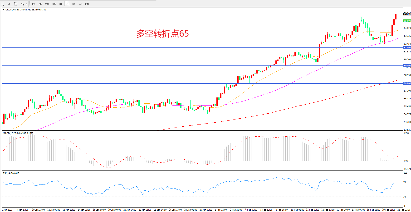 交易策略: 在65.00之上看涨,目标68.00 72.00