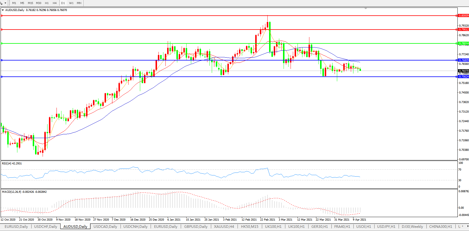 交易策略:0.7800下方看跌,目标0.7680、0.7560