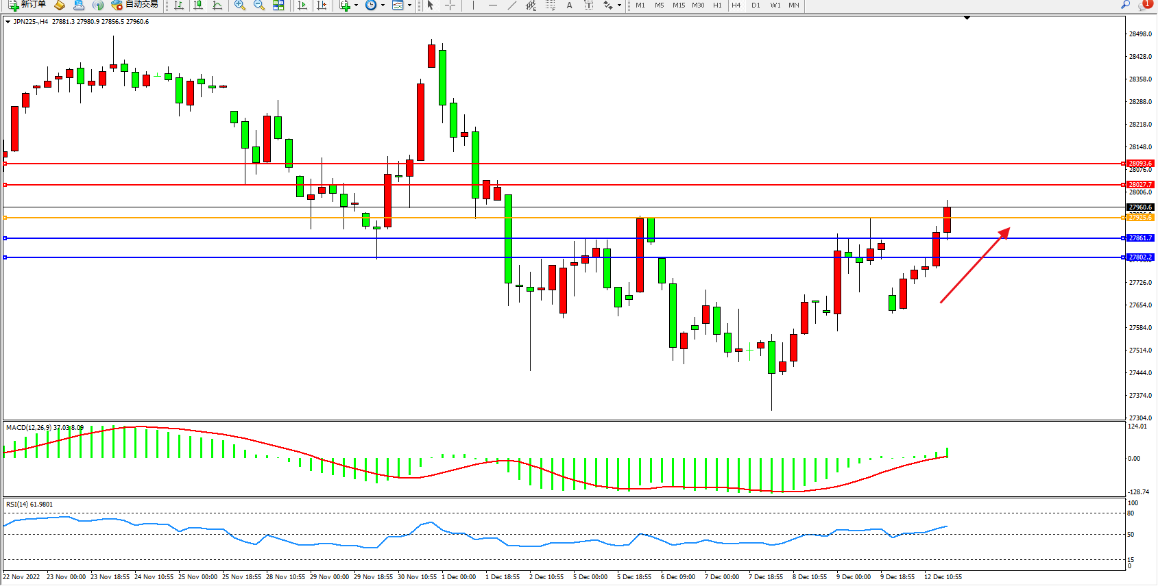 日经225指数12月12日(周一)收盘下跌69.51点,跌幅0.25%,报27831.50点。日本央行发布的数据显示,11月日本国内企业物价指数为118.5,创下历史新高。此外,该指数较去年同期上涨了9.3%。受原油等能源价格和原材料价格上涨的影响,多数企业广泛上调商品价格。
