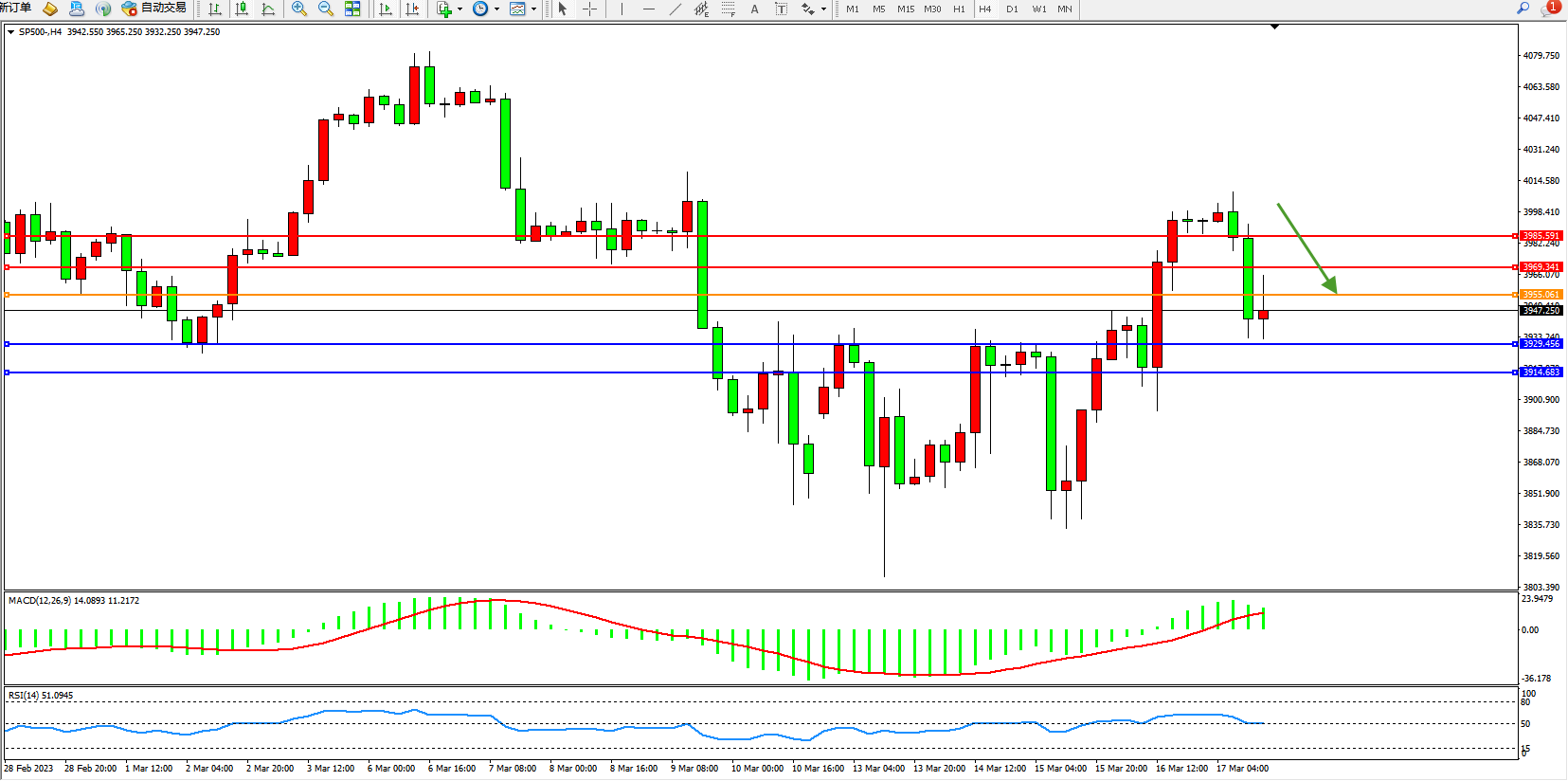 标普500指数3月17日(周五)收盘下跌44.28点,跌幅1.12%,报3916.00点;美联储会期对应的OIS价格显示,美联储将在3月政策会议上加息约17个基点,低于周四收盘时的21个基点。3月合约在纽约时间下午2点后一度跌至4.738%。