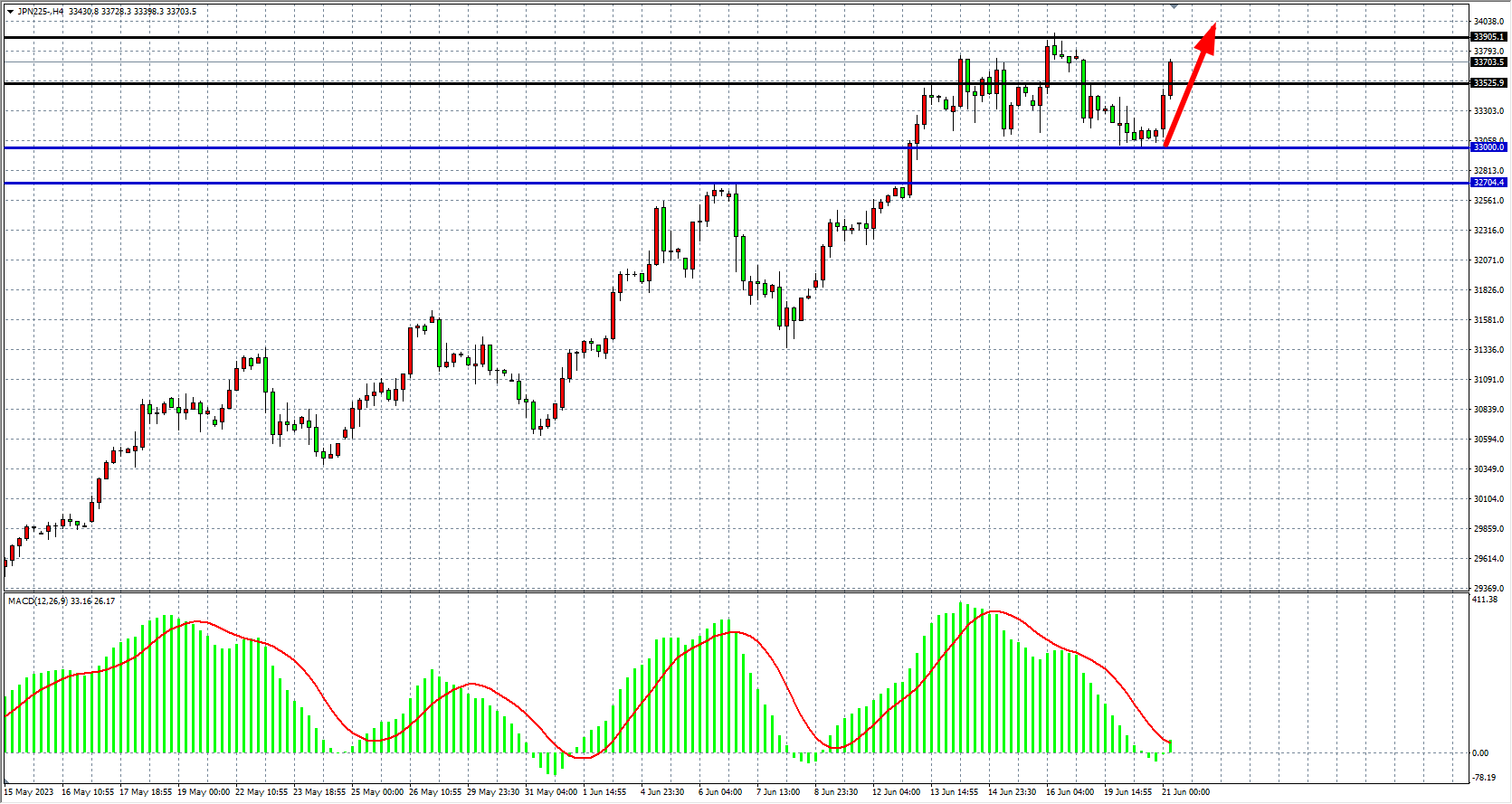 周三(6月21日)日经225指数收盘上涨194.09点,涨幅0.58%