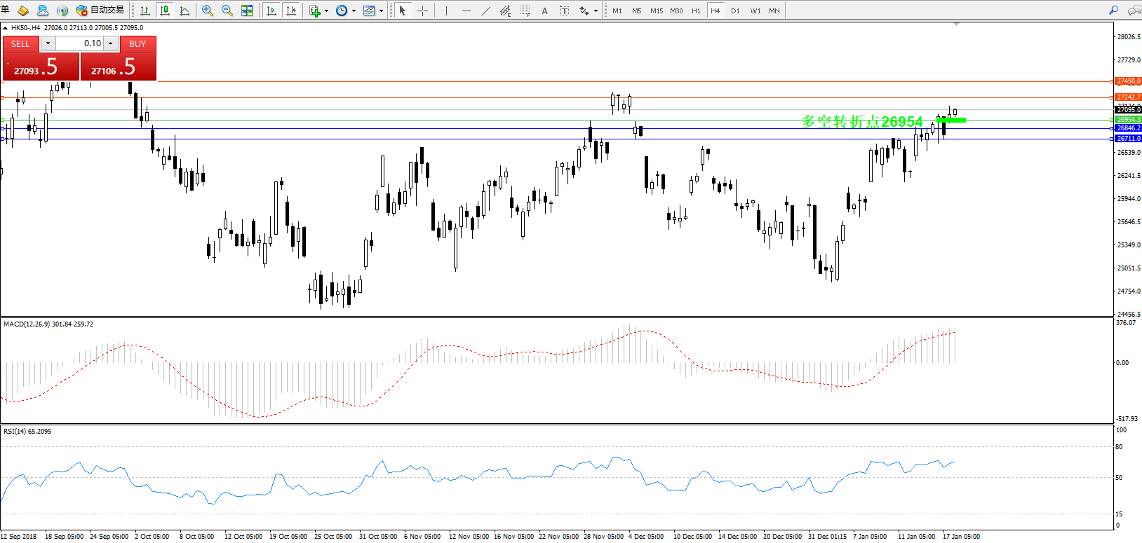 交易策略:26954上方看涨,目标27242、27450